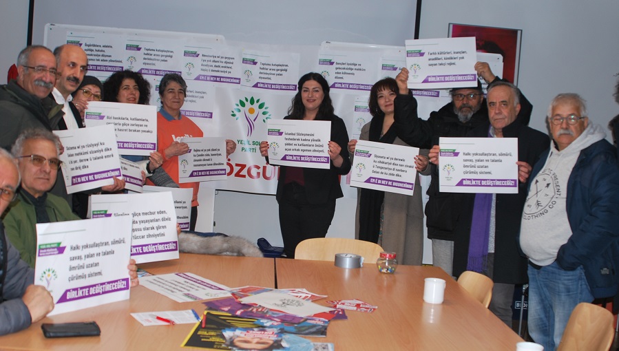 Yeşil Sol Parti ile yola devam edeceklerini belirten gönüllülerde, “Kapatılan bir bir çok partimizden sonra en son HDP ile başlayıp bu gün Yeşil Sol Parti ile seçimlere girmenin heyecanını yaşıyoruz. Altona büromuza seçim gündemini takip etmek isteyen ve çalışmalara katılmak isteyen herkesi bekliyoruz” diye ifade ettiler.