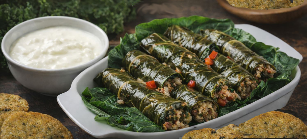Karadeniz’in ünlü karalahana sarması, yoğurt ve mısır ekmeği.