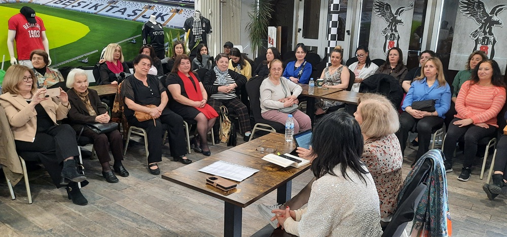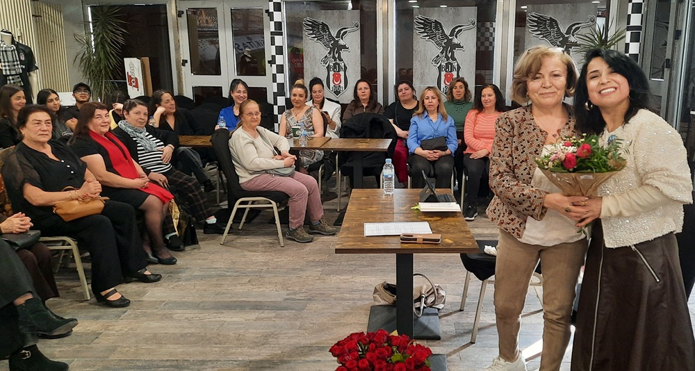 Programın sonunda dernek adına Müşerref Üstüner, konuşmacı yazar Nebahat Ercan’a katkılarından dolayı bir buket çiçek takdim ederek teşekkür etti.