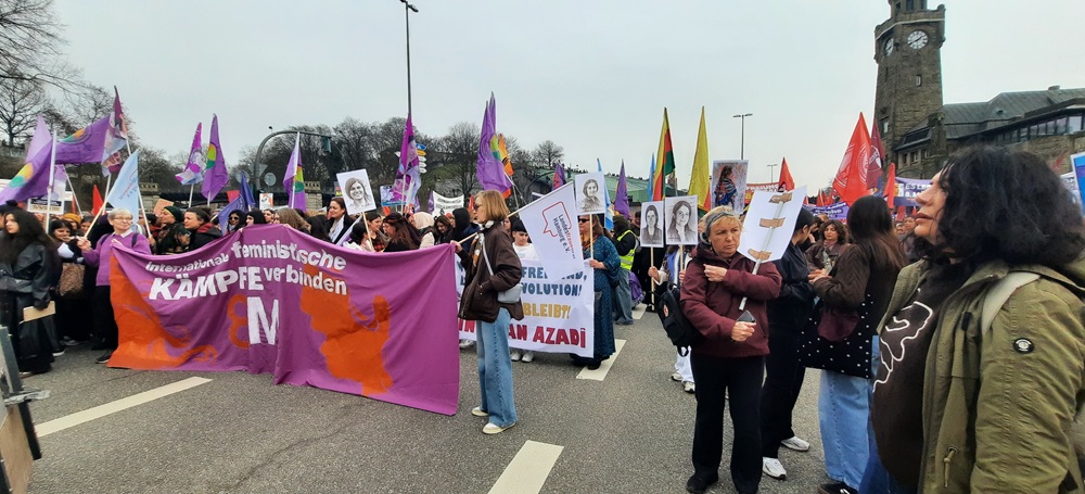 Hamburg’da 8 Mart Dünya Kadınlar Günü dolayısıyla düzenlenen yürüyüşte binlerce kişi kadın hakları, eşit ücret ve şiddete karşı daha güçlü önlemler talebiyle sokağa çıktı. Polis katılımı 8 bin olarak açıklarken, bazı katılımcılar kalabalığın 10 ila 15 bin kişi arasında olduğunu ifade etti.