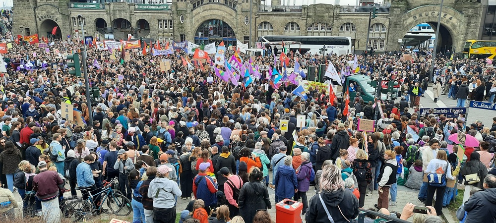 HamburgHaber – Uluslararası Kadınlar Günü dolayısıyla Hamburg’da binlerce kişi sokaklara çıkarak kadın hakları, eşit ücret ve şiddete karşı daha güçlü önlemler talebiyle yürüdü. Kentte gün boyunca çeşitli etkinlikler ve gösteriler düzenlenirken, en büyük yürüyüş St. Pauli’deki Landungsbrücken’de başladı ve şehir merkezine doğru ilerledi.