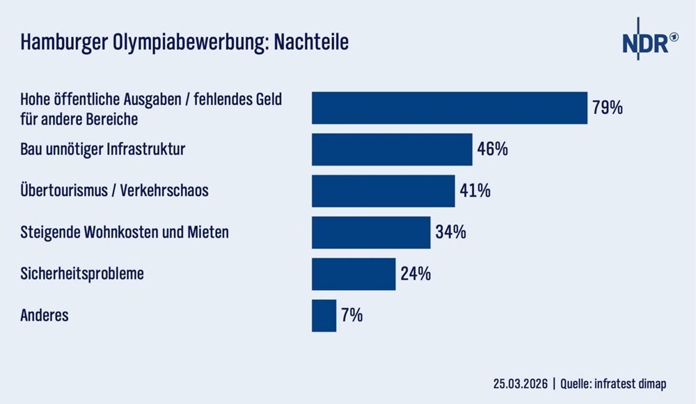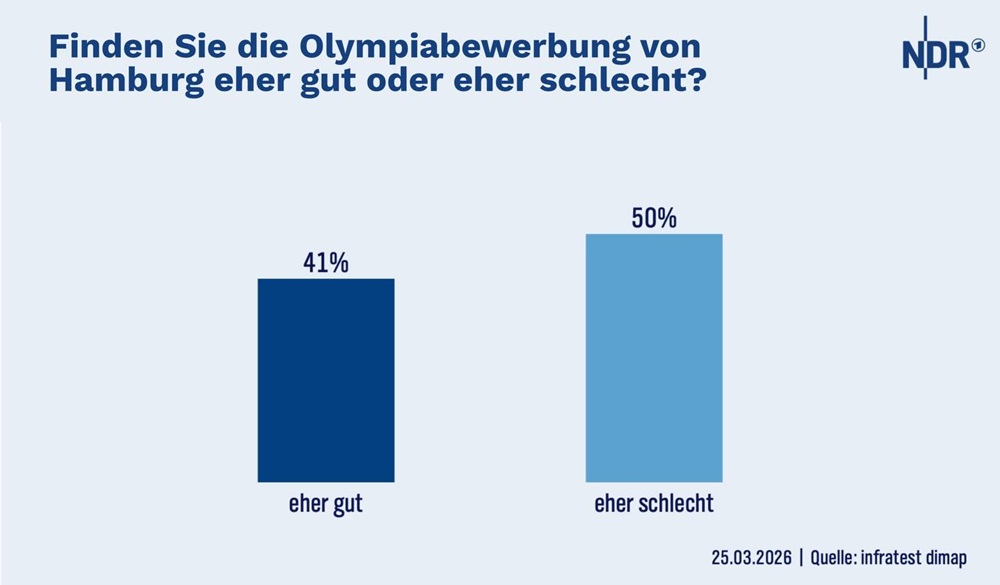 Hamburg’da yapılacak Olimpiyat adaylığı referandumu öncesinde yapılan NDR anketi, kent sakinlerinin çoğunluğunun temkinli olduğunu ortaya koydu. Yüksek maliyetler ve altyapı yükü karşıt görüşlerin öne çıkmasına neden oluyor, destekleyenler ise ekonomik ve yapısal kazanımlara dikkat çekiyor.