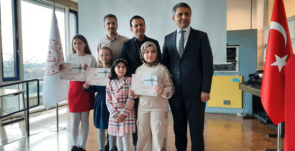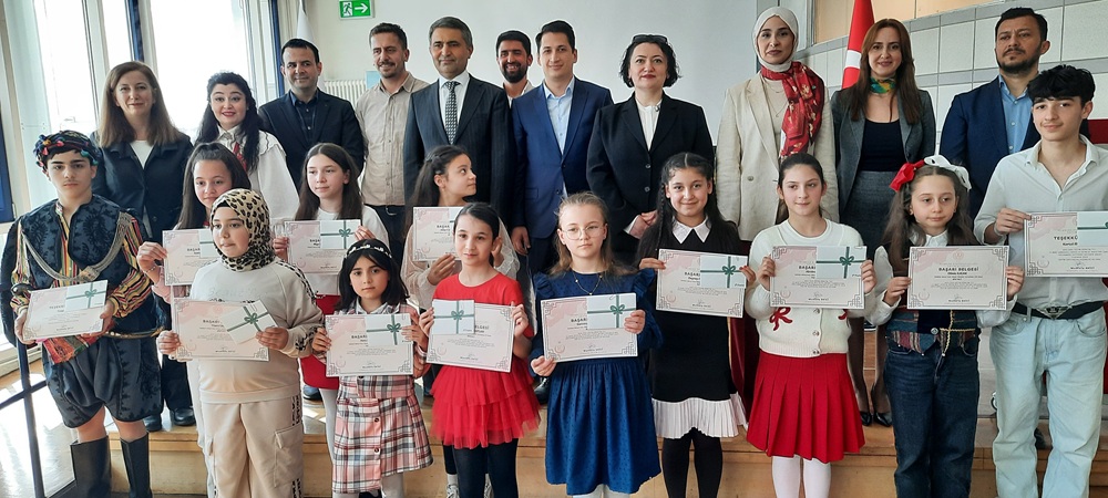 Ardından dereceye giren öğrencilere ödülleri; Hamburg Konsolosu Yıldız Albostan, Eğitim Ataşesi Mustafa Ekici ile birlikte ataşelik temsilcileri Mücahid Yılmaz ve Sümeyye Betül Lambrecht tarafından takdim edildi.