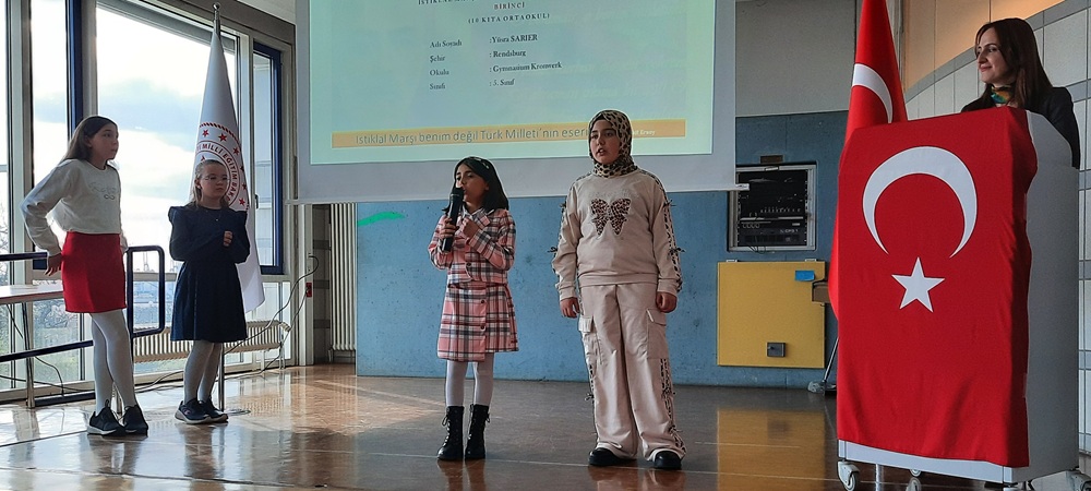 Hamburg’da düzenlenen anlamlı programda, Çanakkale Zaferi ve İstiklal Marşı’nın kabulü anılırken, öğrenciler sahnede sergiledikleri performanslarla izleyenlere duygu dolu anlar yaşattı. Yarışmada dereceye giren öğrenciler ödüllerini protokol üyelerinden aldı.