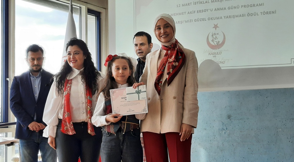 Bazı öğrenciler İstiklal Marşı’nın ilk iki kıtasını, bazıları ise marşın tamamını (10 kıta) ezbere ve büyük bir duygu yoğunluğuyla okudu. Öğrencilerin sahnedeki performansları izleyiciler tarafından uzun süre alkışlandı.