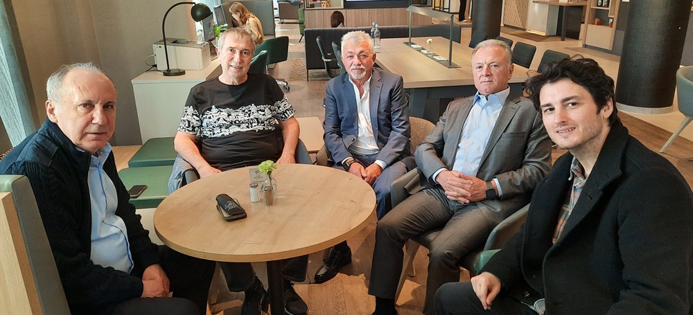Hamburg’da otel lobisinde gerçekleşen söyleşide Muharrem İnce (soldan 1.), Hulisi Işıtan (soldan 4.) ve beraberindeki heyetle birlikte .