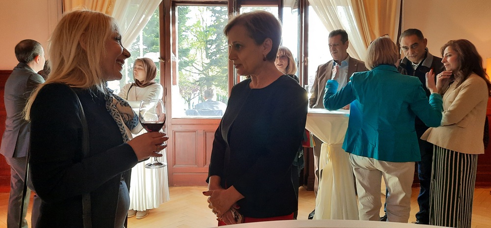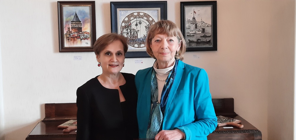 Ressam ve Çini sanatçısı Elif Alver (solda) ile açılış konuşmasını yapan Ilse Lietz.